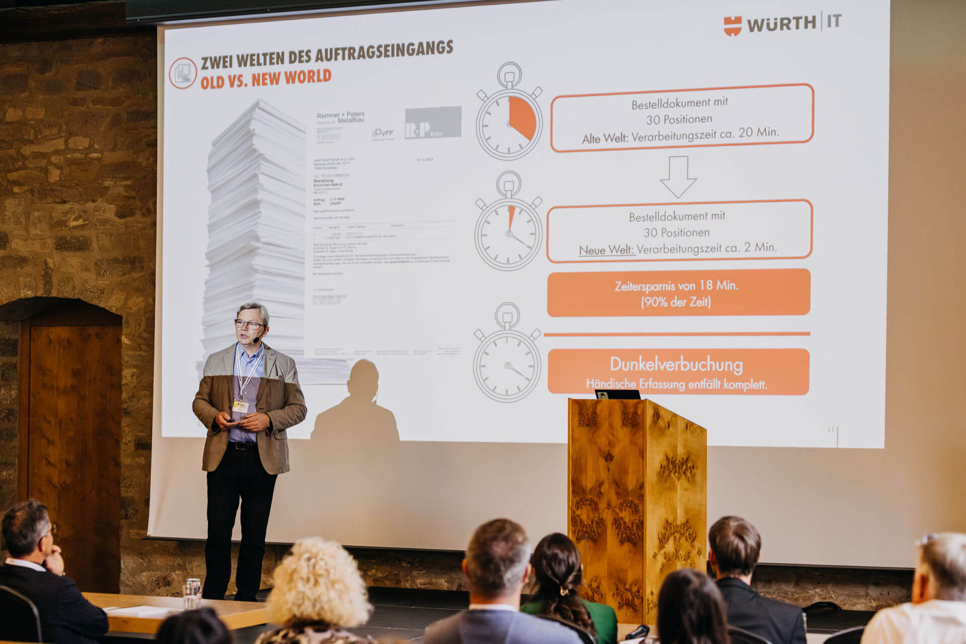 Am Nachmittag standen konkrete Branchen- und Kundenbeispiele im Fokus – von der Energie- über die Versicherungs- bis zur Industriebranche. Themen reichten von der Nutzung von Fachdaten und KI-Tools bei Zurich, über die Optimierung von Auftragsprozessen bei Würth Industrie Service, bis zu Cloud-Initiativen mit SEEBURGER und der Automatisierung kaufmännischer Abläufe.
